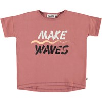Raeesa er en mørke rosa t-shirt med printet 'Make Waves' på fronten. T-shirten har en fin bred facon, som falder flot.