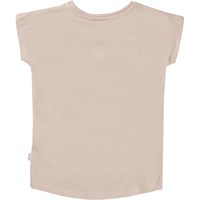 Ragnhilde er en en lyserød t-shirt i økologisk bomuld. Ragnhilde har en dropped hem på bagsiden og på forsiden ses printet Flower Cats, hvor to fluffy, grå katte betragter smukke blå blomster svæve ned fra himlen.