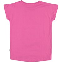 Ragnhilde er en pink t-shirt med print af blomsterkrans om halsen. T-shirten har helt korte ærmer og er i 100% bomuld.
