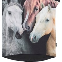 Ragnhilde er en sort t-shirt i økologisk bomuld. Ragnhilde har en dropped hem på bagsiden og på forsiden ses printet Triolets, hvor 3 smukke og forskellige heste, stikker hovederne sammen.
