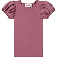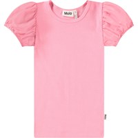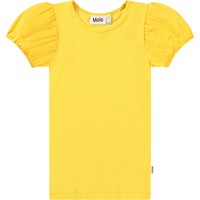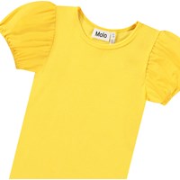 Gul tætsiddende t-shirt i blødt økologisk bomuldsrib med rund hals og pufærmer med elastik i kanten.