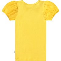 Gul tætsiddende t-shirt i blødt økologisk bomuldsrib med rund hals og pufærmer med elastik i kanten.