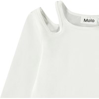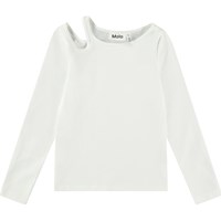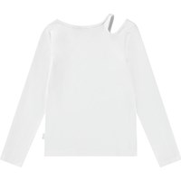 Tætsiddende hvid langærmet bluse i økologisk bomuld med rund hals og åbning på højre skulder, hvilket giver blusen en fin detalje.