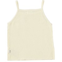 Ranita er en lysegul top i strikket bomuld med stropper og med en fint hulmønster på det øverste frontstykke. Kombinér med matchende shorts, Aline, for et komplet outfit.