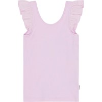 Lilla tanktop i blødt økologisk bomuld. Toppen har en tætsiddende pasform og poplin-flæser på skuldrene.
