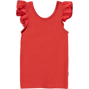 Ranja er en tanktop i rød, der kan tage ethvert outfit op på et nyt niveau. Med sine fine poplin flæser på skuldrene, er Ranja både til hverdag og fest.