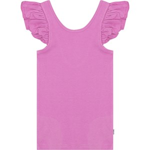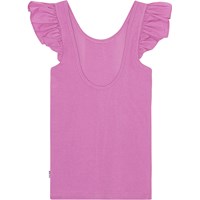 Pink tanktop i blødt økologisk bomuld. Toppen har en tætsiddende pasform og poplin-flæser på skuldrene.