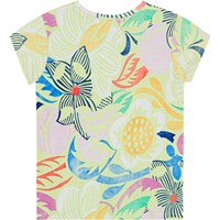 Lysegrøn økologisk bomulds t-shirt med et lille ærme. T-shirten har en god og pasform. T-shirten har et alloverprint af kunstneriske blomster i multifarver.