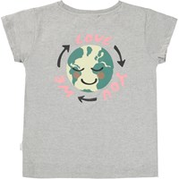 Ranva er en grå t-shirt med print af jordklode på ryggen og teksten 'We love you'.