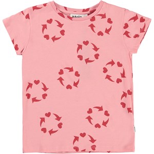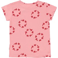 Ranva er en pink t-shirt med print af recycled hjerter, som kører i ring.