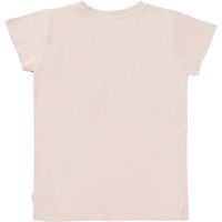Ranva er en lyserød t-shirt i økologisk bomuld. Ranva har et slim fit og en lyserød og orange blomst med pallietter, broderet på brystet.