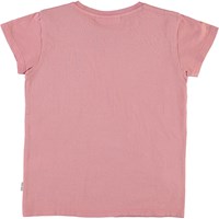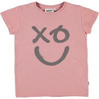 Ranva er en rosa t-shirt med print af smiley på fronten.