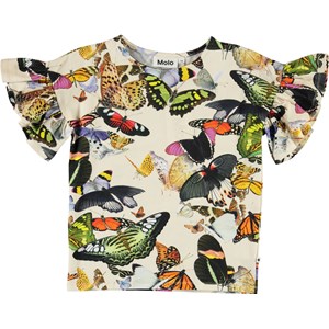 Bliv en del af den smukke sommerfugle flok med t-shirten Rayah. Rayah har korte ærmer med flæser.