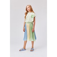 Rayla er en mint grøn t-shirt i et afslappet fit, med et grønt æble printet på brystet. Rayla har ribkant i halsen og slidser i begge sider.