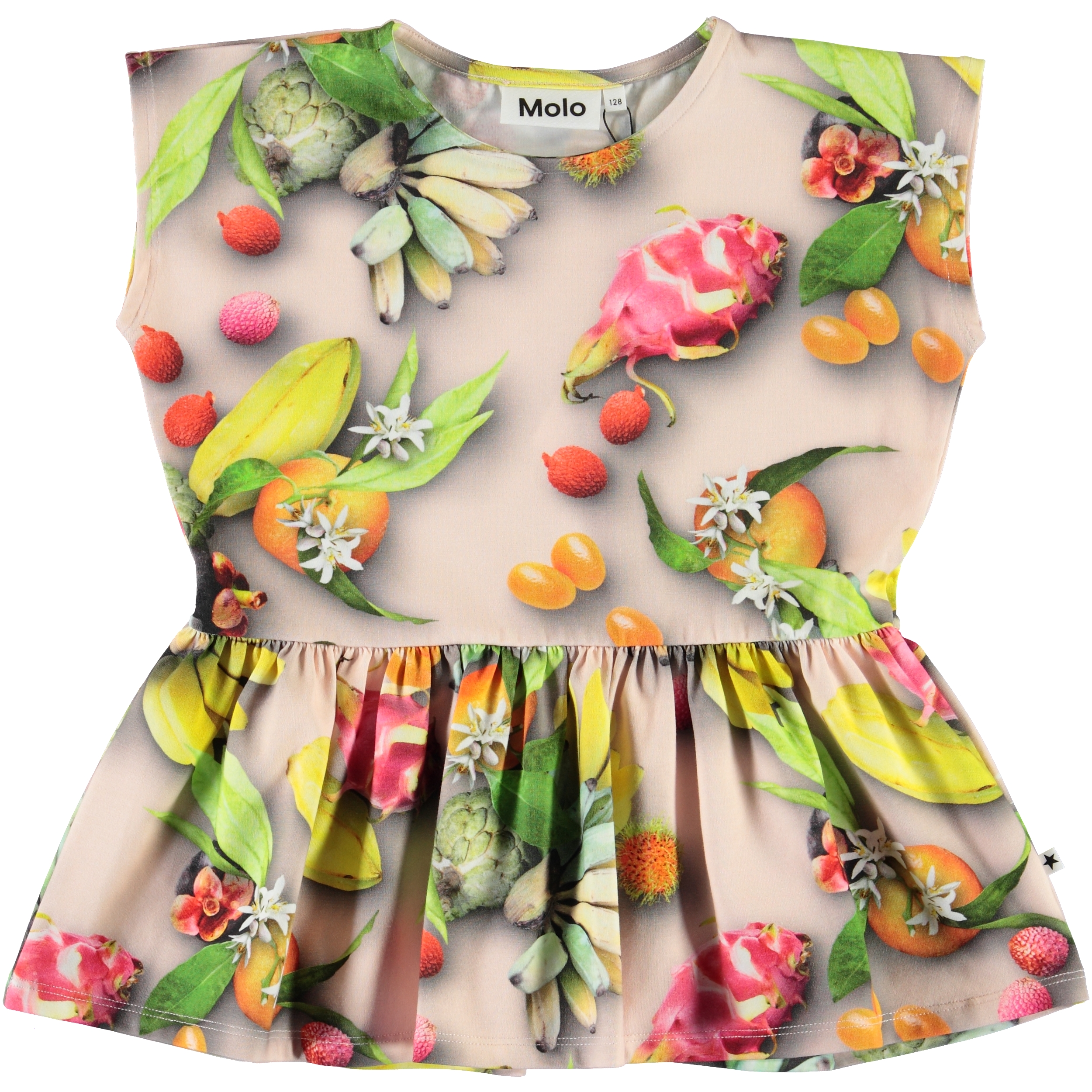 Rayna er en feminin t-shirt i printet 'Tutti Frutti' med peplum skørt.