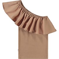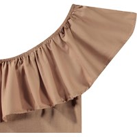 Brun one-shoulder top i økologisk bomuld med stretch. Toppen har en tætsiddende pasform og en bred poplinflæse langs halsudskæringen.