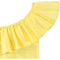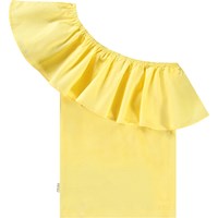 Gul one-shoulder top i økologisk bomuld med stretch. Toppen har en tætsiddende pasform og en bred poplinflæse langs halsudskæringen.
