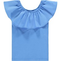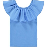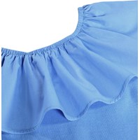 Blå off-shoulder top uden ærmer i blød, økologisk bomuldsjersey med stretch. Toppen har en bred flæsekant i poplin langs den elastiske halsudskæring, som også kan bæres trukket ned over skuldrene.