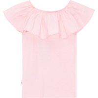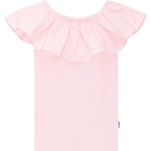 Pastel lyserød off shoulder-top uden ærmer i blødt økologisk bomuld med stretch. Toppen har en bred flæsekant i poplin langs den elastiske halsudskæring, der gør, at kraven også kan bæres over skuldrene.