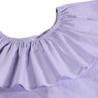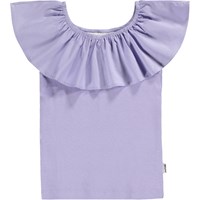 Lilla off-shoulder top uden ærmer i blød, økologisk bomuldsjersey med stretch. Toppen har en bred flæsekant i poplin langs den elastiske halsudskæring, som også kan bæres trukket ned over skuldrene.
