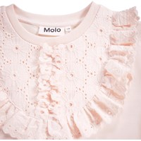 Lyserød langærmet bluse i blødt økologisk bomuld med rund hals og kantbånd. Blusen har en normal pasform med flot broderi anglaise flæse detalje på fronten.