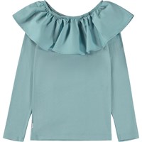Lyseblå langærmet top med poplinkrave. Poplinkraven er med elastik, og kan både placeres off-shoulder eller placeres oppe, så den fungerer som både krave og ærme.