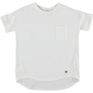 Renessa er en hvid t-shirt med en lille lomme på brystet. T-shirten har en bred og løs pasform.