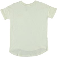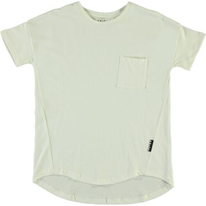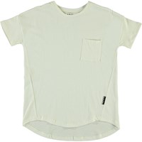 Renessa er en hvid t-shirt med rund hals, korte ærmer og brystlomme. T-shirten har en let oversized pasform.