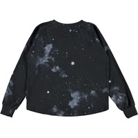 Reniza er en mørkeblå sweatshirt med front print af hest som stikker hovedet frem i mellem åkander. Blusen har en lidt bred pasform, som falder flot på kroppen.