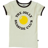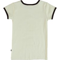 Rhiannon er en ringer t-shirt med sorte kantbånd og vintage inspireret front print med tekst på brystet.