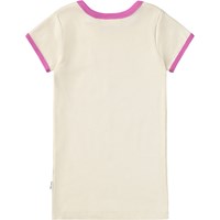Råhvid t-shirt i blødt økologisk bomuld med rund hals og lilla kantbånd. T-shirten er tætsiddende med teksten Better Together og en charmerende kanin på fronten.