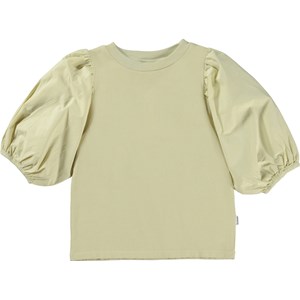 Rica er en sart gul top i økologisk bomuld, med pufærmer i poplin. Ærmerne har elastik i bunden, der fremhæver puf-effekten.