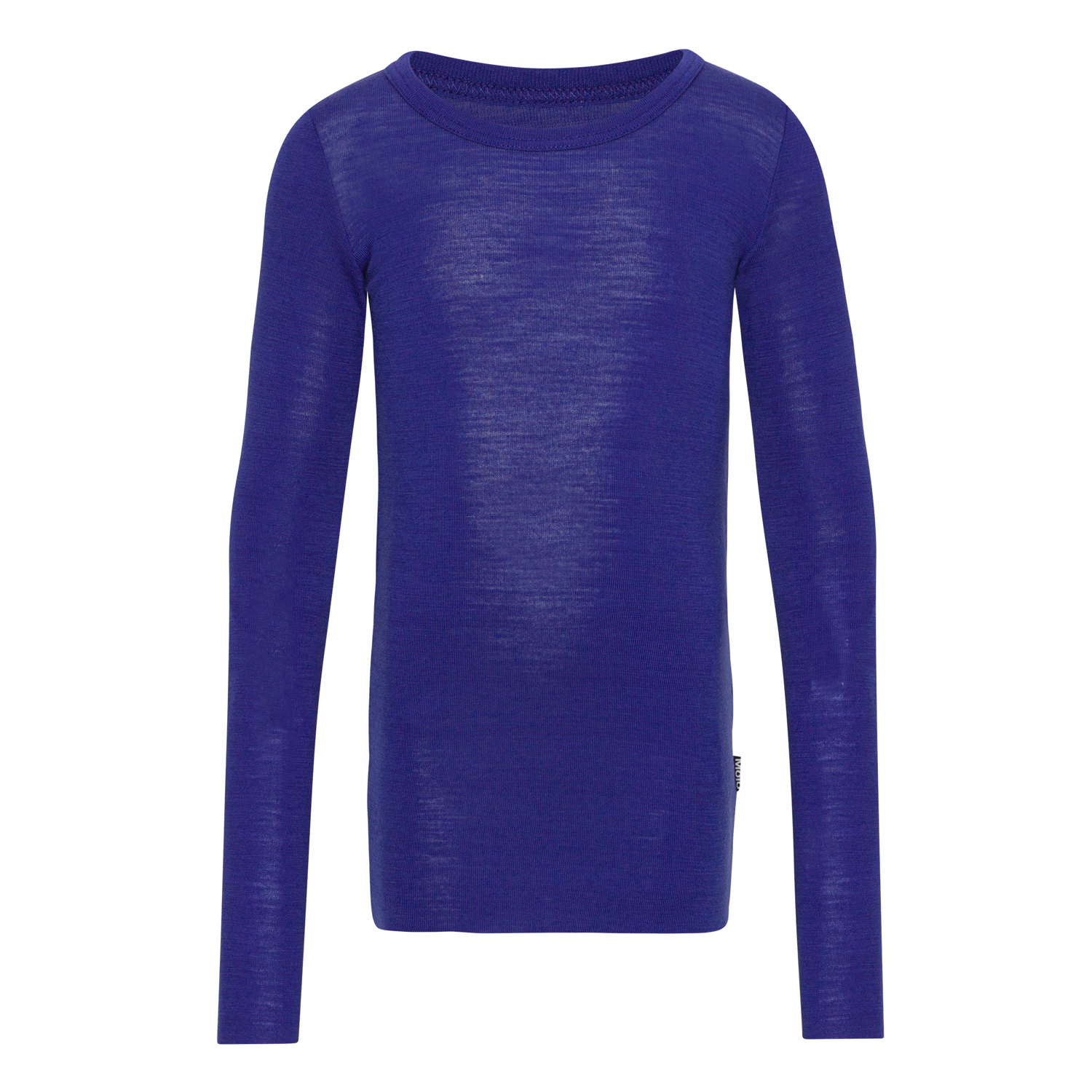 Mørkeblå langærmet bluse i 100% Merino uld, der er perfekt til at give lige det ekstra varme lag på de koldere dage. Blusen har lange ærmer, en rund halsudskæring, samt et slim fi