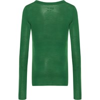 Grøn langærmet bluse i 100% Merino uld, der er perfekt til at give lige det ekstra varme lag på de koldere dage. Blusen har lange ærmer, en rund halsudskæring, samt et slim fi