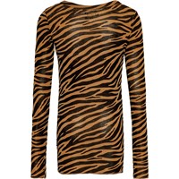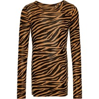 Zebra-stribet langærmet bluse i merinould med tætsiddende pasform, rund halsudskæring og babylock-kanter ved ærmer og bunden af blusen. Match med leggings i samme farver for et komplet sæt.