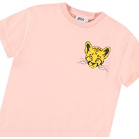 Lyserød t-shirt i blødt økologisk bomuld med korte ærmer og ribkant i halsen. T-shirten har en løs pasform med et print af en gul gepardunge og teksten ´We are Nature´, både på brystet og ryggen.