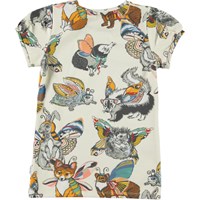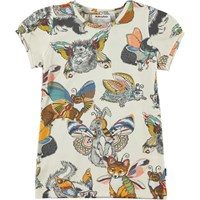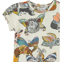 Rimona er en lys t-shirt med print skovens forskellige dyr med vinger. Se om du kan genkende dyrene selvom de har fået vinger?