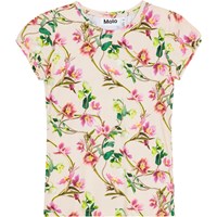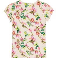 Tætsiddende t-shirt i økologisk bomuld med små korte ærmer med puf og en rund halsudskæring. Alloverprint af juleroser i hvide og lyserøde nuancer, der smukt grener sig sammen med deres grønne blade.