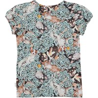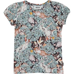 Rimona er en top i økologisk bomuld med cap sleeve. Toppen er printet i alloverprintet Park Life, hvor kattekillinger og hundehvalpe ruller sig i en blå blomstereng.