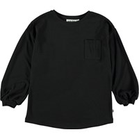 Rine er en sort langærmet bluse med volumen i ærmerne.