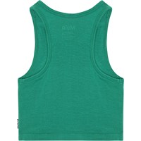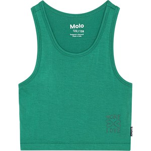 Grøn, kort tanktop i blødt viskose. Toppen har dybe ærmegab samt et diskret print på fronten af 'More Love'.
