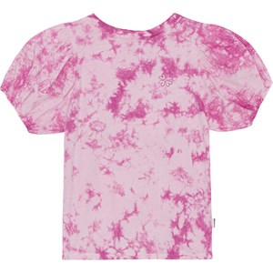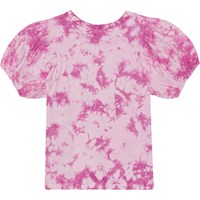 Lilla tie-dye t-shirt i blødt økologisk bomuldsjersey med voluminøse, korte ærmer i poplin. Lille print på brystet af fire hjerter arrangeret i en kløverform.