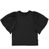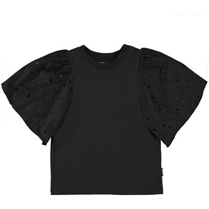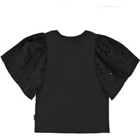 Ritza er en sort top med smukke, korte broderie anglaise ærmer. Ærmerne rynker på toppen af skulderen, der skaber en elegant puf-effekt. Kombinér med den matchende nederdel, Brigitte, for et komplet outfit.