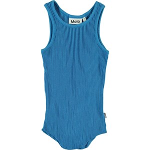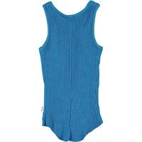 Roberta er en ribbet tanktop i blå, som er en smule kortere i længden i siderne. Certificeret af Ecocert Greenlife, certifikationsnr. 197496.