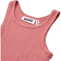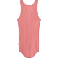 Lys rosa tanktop i blødt økologisk bomuldsrib med rund hals. Toppen har en tætsiddende pasform, mellem brede stropper samt en rå afrundet kant i bunden.