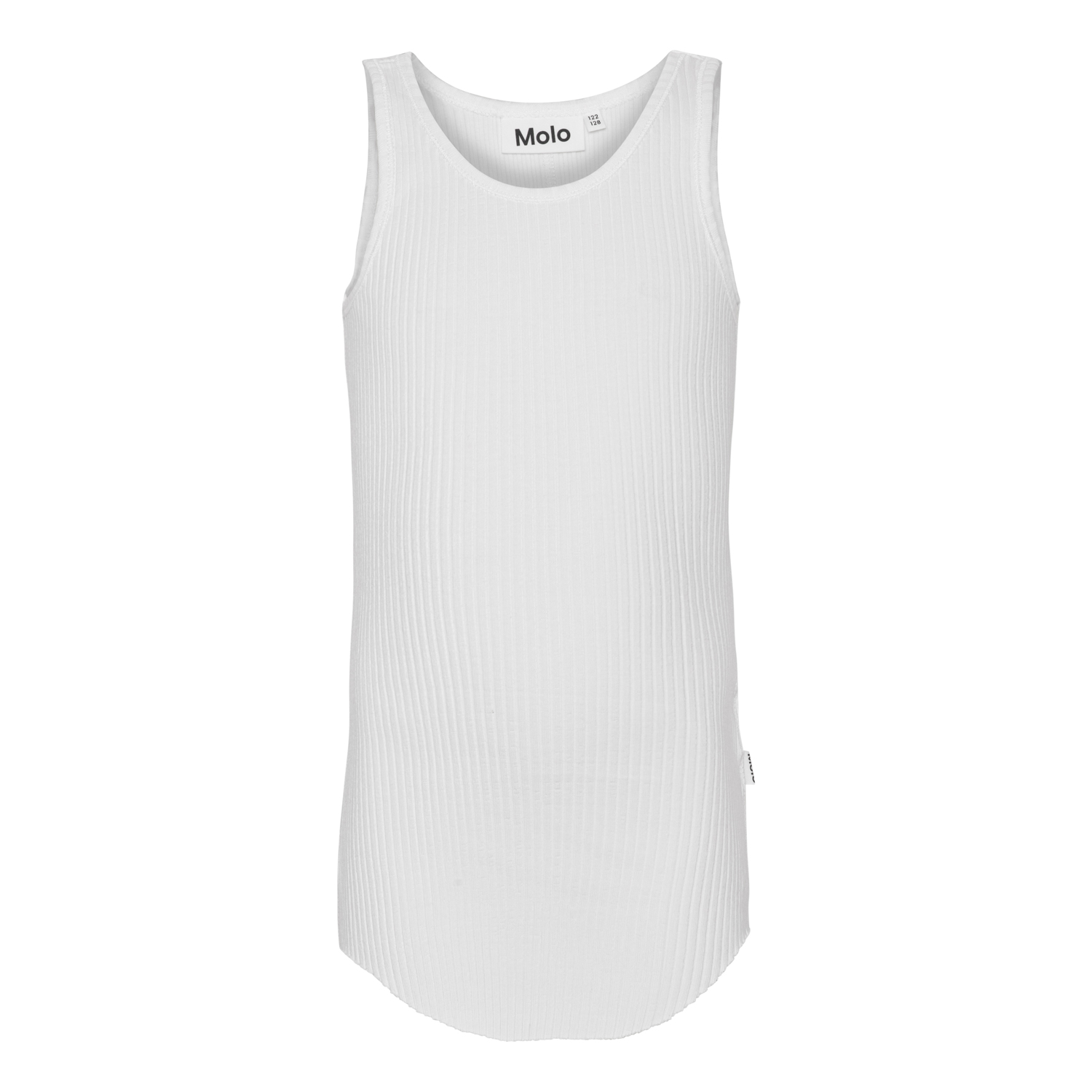 Roberta er den perfekte hvide tanktop i økologisk bomuld. Toppen er i rib og dypper længere ned foran og bagpå.