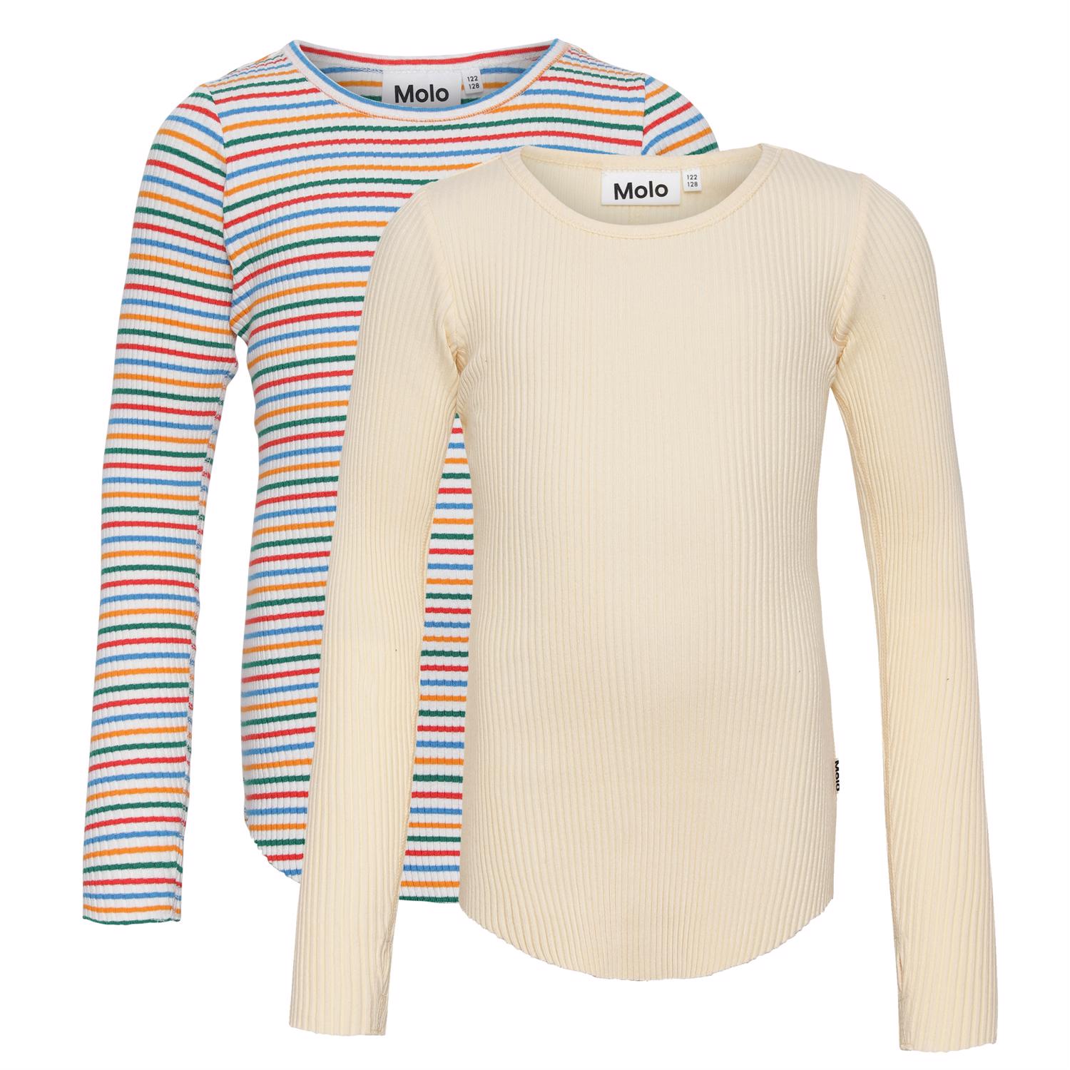 Rochelle er den perfekte bluse, som du aldrig får nok af. Blusen er i rib kvalitet og har hul til tommelfingrene. Her er Rochelle i en 2-pack, som indeholder både en lysegul og en regnbue stribet bluse.