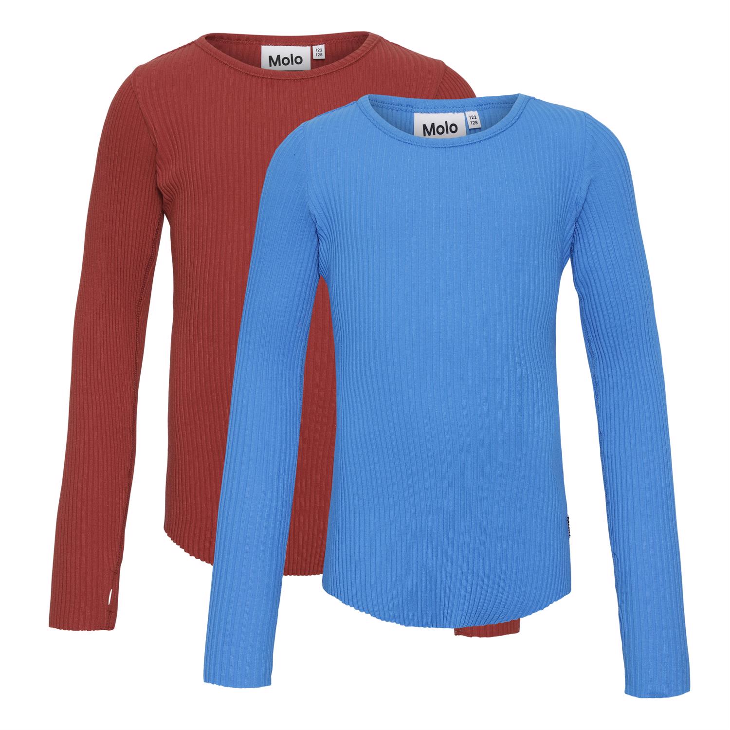 Rochelle er den perfekte bluse, som du aldrig får nok af. Blusen er i rib kvalitet og har hul til tommelfingrene. Her er Rochelle i en 2-pack, som indeholder både en rød og en blå bluse.