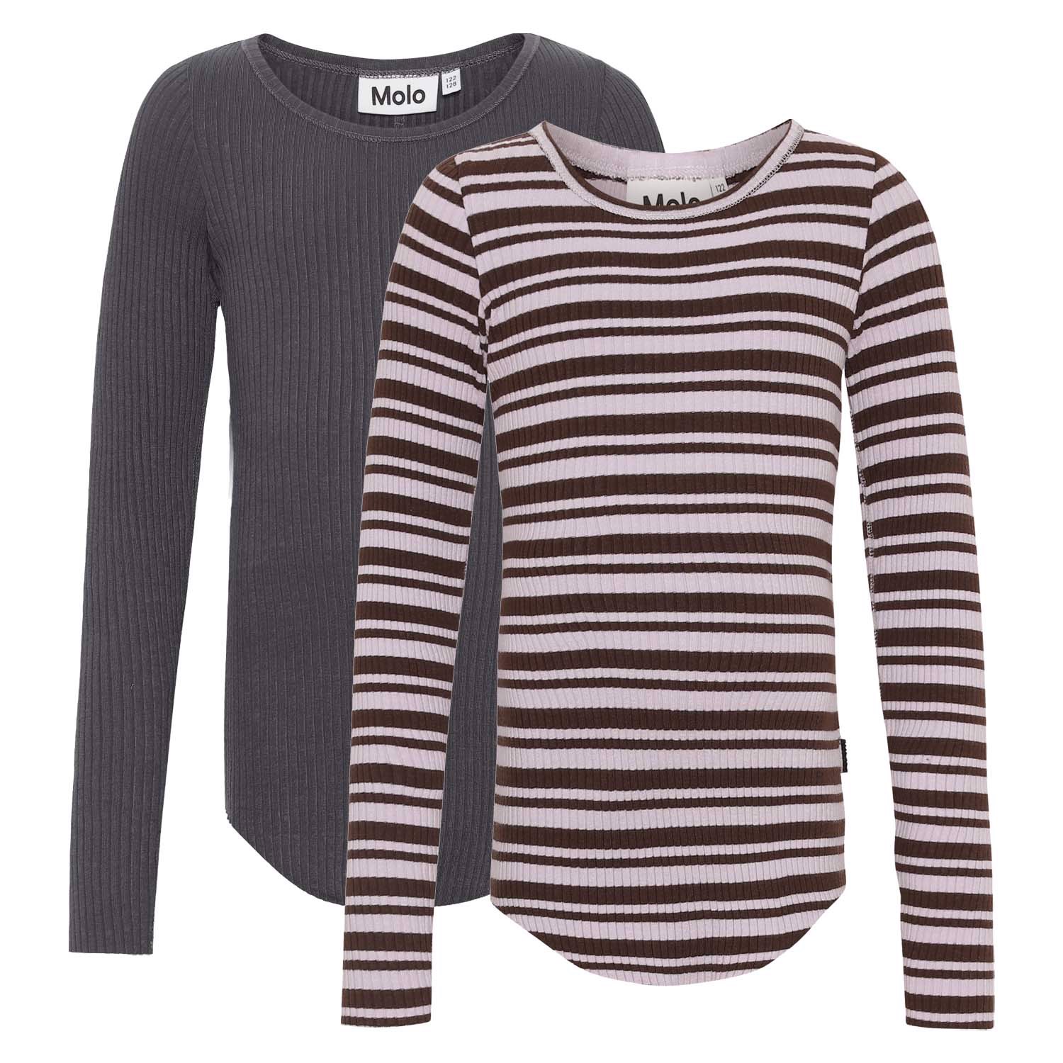 Rochelle er den perfekte bluse, som du aldrig får nok af. Blusen er i rib kvalitet og har hul til tommelfingrene. Her er Rochelle i en 2-pack, som indeholder både en grå og en stribet bluse.