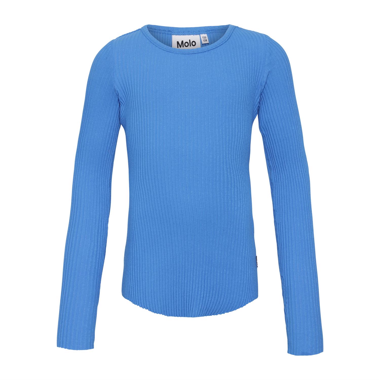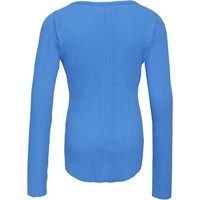 Rochelle er den perfekte blå bluse, som du aldrig får nok af. Blusen er i rib kvalitet og har hul til tommelfingrene. Certificeret af Ecocert Greenlife, certifikationsnr. 197496.